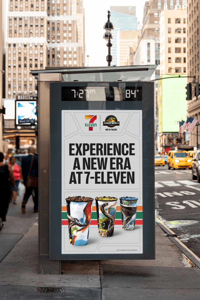 Following the commercial shoot, I created billboards for store takeovers in New York City, Los Angeles, Columbus, and Dallas. The initial ask was to feature all 17+ partnership products, but I fought to keep the design bold, simple, and legible within the average four-second view time of a billboard. By sticking to my rationale and design principles, the final concept was approved, and was especially well received by the film studio partners. The finished boards distilled the partnership into an eye-catching, high-impact message that drove customers to stores.