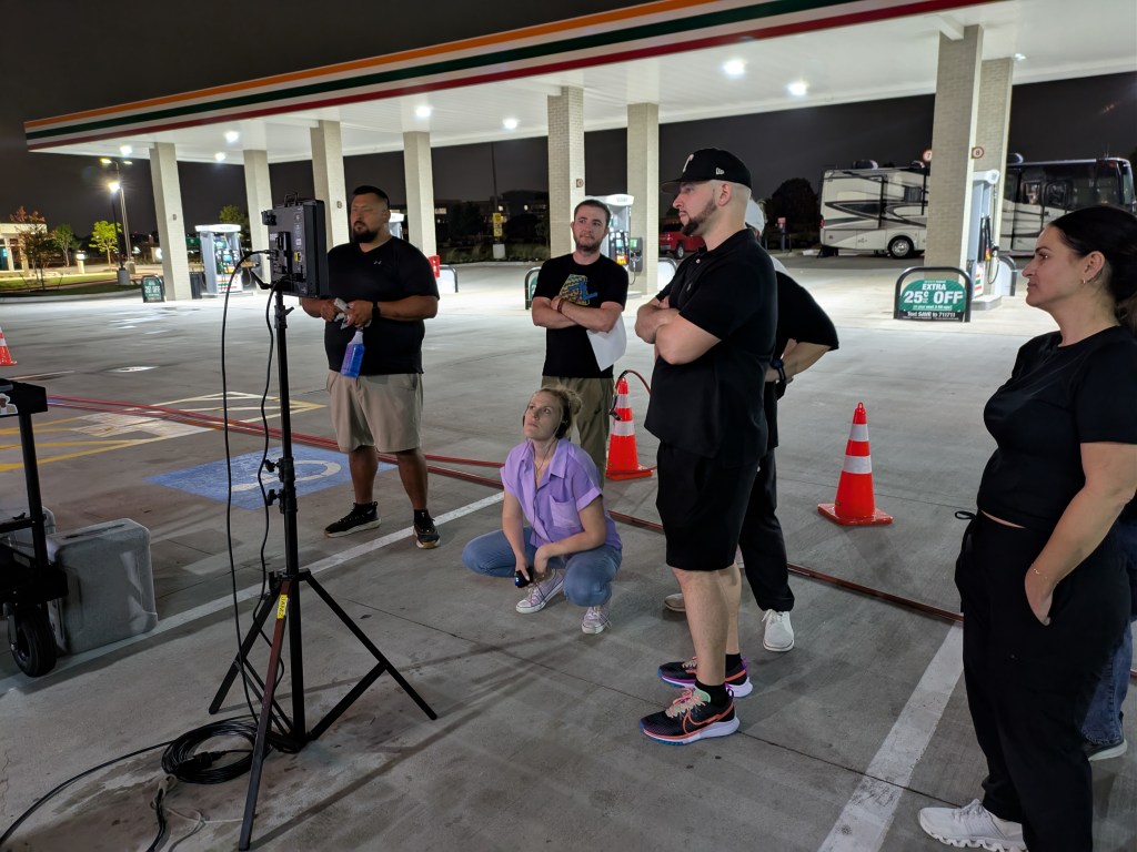 It was incredibly fun to watch my storyboard come to life during an overnight shoot, seeing sketches transform into real sets, lighting, and action. Even though we filmed from 7 PM to 3 AM, the energy stayed high—it was surreal to watch the vision unfold in real time.